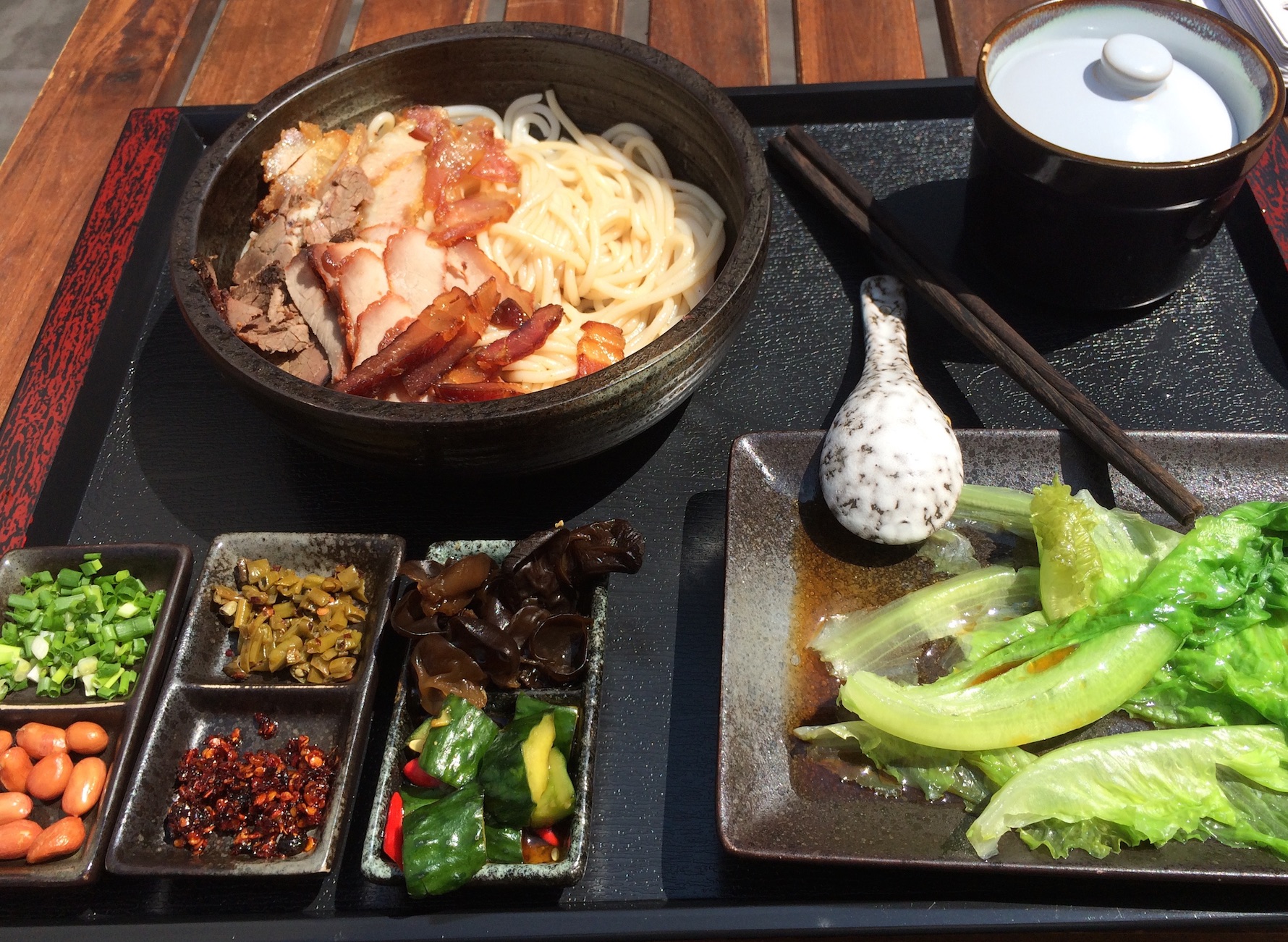 Aus dem Reis der Lijiang Reiseterrassen bei Guilin werden diese leckeren und etwas dickeren Reisnudeln gewonnen. Zusammen mit verschiedenen Gewürzen und etwas Enten- oder Hühnerfleisch ein absoluter Gaumenschmaus. Dieses Gericht kann man super im Rice Noudle Pub in Guilin genießen.