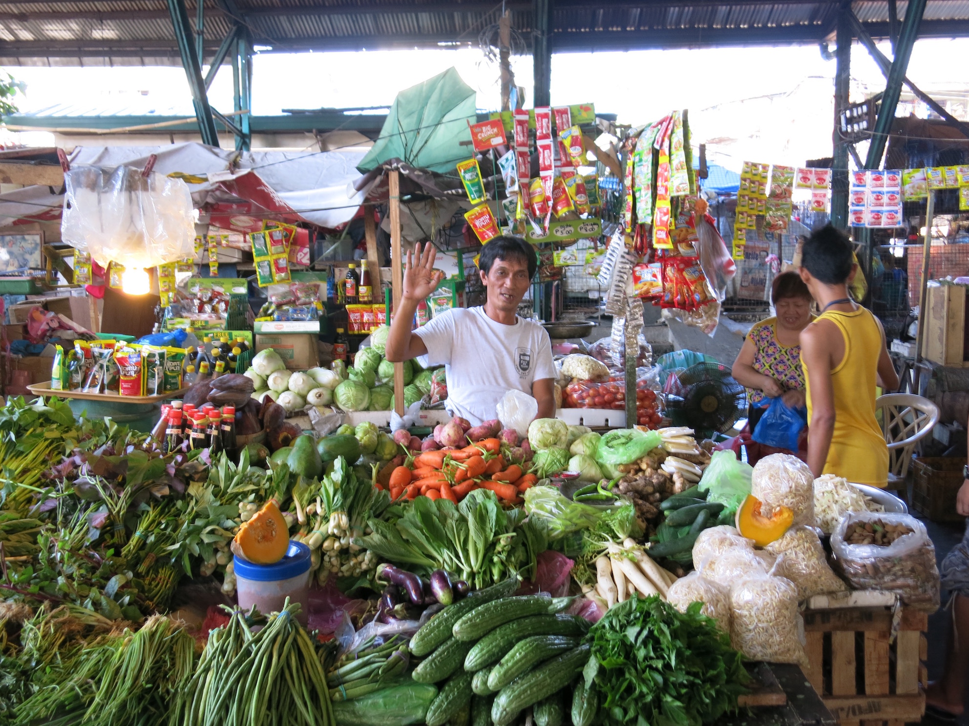 An einem Tag gehe ich auf einen Wet Market. Das ist im Prinzip ein Markt auf dem alles Mögliche angeboten wird. Die Philippinos verkaufen an kleinen Ständen Gemüse, Obst, Fisch, Fleisch und Klamotten. Es ist sehr interessant über den Markt zu schlendern und mit den Leuten in Kontakt zu kommen. Da ich mit meiner GoPro und Digicam herumlaufe, kommt man leicht ins Gespräch. Die meisten Leute sprechen Englisch hier.
