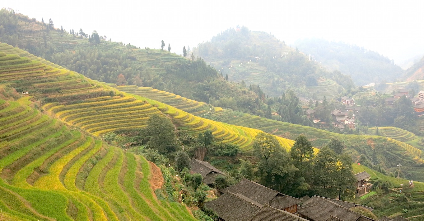 Um auch einen Eindruck der Landschaft in China zu bekommen, mache ich mich auf nach Guilin. Hier hat man die Möglichkeit sich die wunderschönen Longji Reisterrassen anzuschauen. Der Reis hat zu dieser Jahreszeit eine gelbe Färbung und wird dann in der zweiten Oktoberwoche geerntet.